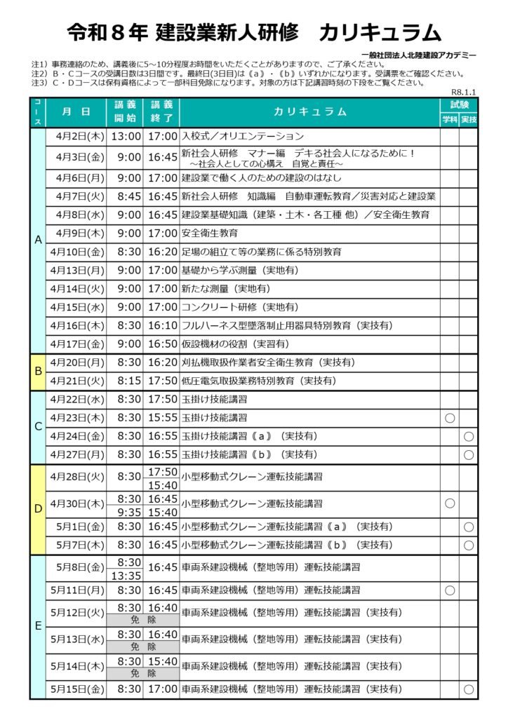 令和8年建設業新人研修のご案内